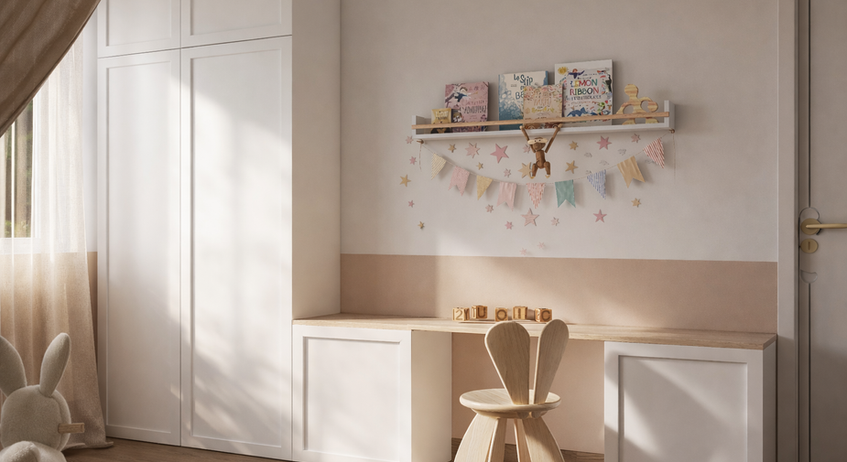 Pour ce projet, mes clients venaient tout juste de terminer la construction de leur maison et souhaitaient désormais donner vie à la chambre de leur fille. Partant d’une page blanche, ils m’ont confié l’aménagement et la décoration de cet espace.